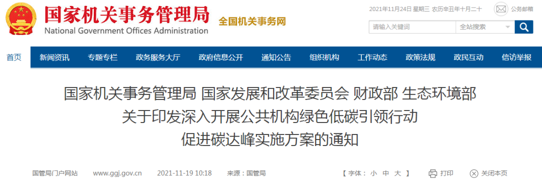 文章導(dǎo)讀11月19日,國家機(jī)關(guān)事務(wù)管理局、國家發(fā)展和改革委員會、財(cái)政部、生態(tài)環(huán)境部四部委發(fā)布《關(guān)于印發(fā)深入開展公共機(jī)構(gòu)綠色低碳引領(lǐng)行動促進(jìn)碳達(dá)峰實(shí)施方案》的通知。11月19日,國家機(jī)關(guān)事務(wù)管理局、國家發(fā)展和改革委員會、財(cái)政部、生態(tài)環(huán)境部四部委發(fā)布《關(guān)于印發(fā)深入開展公共機(jī)構(gòu)綠色低碳引領(lǐng)行動促進(jìn)碳達(dá)峰實(shí)...