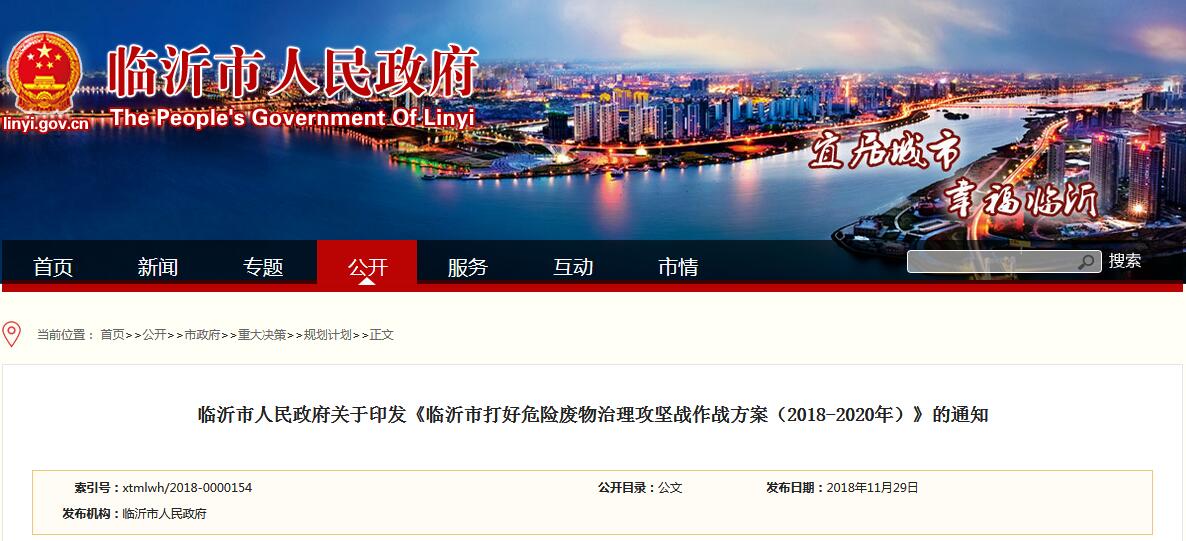 日前,山東臨沂印發(fā)《臨沂市打好危險(xiǎn)廢物治理攻堅(jiān)戰(zhàn)作戰(zhàn)方案(2018-2020年)》,詳情如下:臨沂市人民政府關(guān)于印發(fā)《臨沂市打好危險(xiǎn)廢物治理攻堅(jiān)戰(zhàn)作戰(zhàn)方案(2018-2020 年)》的通知臨政字〔2018〕183 號各縣區(qū)人民政府,市政府各部門、各直屬機(jī)構(gòu),臨沂高新技術(shù)產(chǎn)業(yè)開發(fā)區(qū)管委會,臨沂經(jīng)濟(jì)技術(shù)...