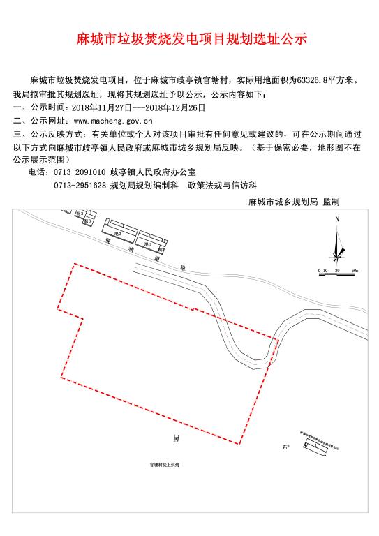 日前,湖北麻城市公示垃圾焚燒發(fā)電項(xiàng)目規(guī)劃選址,項(xiàng)目主要建設(shè)內(nèi)容為日處理生活垃圾1200噸,年處理垃圾42.9萬噸的垃圾焚燒電廠,配置2×600t/d機(jī)械爐排焚燒爐+2×12MW 凝汽式汽輪機(jī)組。同步建設(shè)煙氣處理、滲濾液收集、廢水處理、飛灰處置等環(huán)保設(shè)施。公示如下: