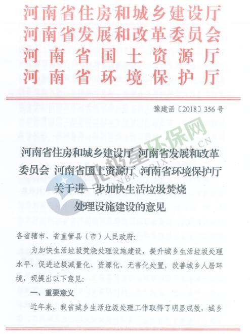 日前,河南省發(fā)布關(guān)于于進(jìn)一步加快生活垃圾焚燒處理設(shè)施建設(shè)的意見,到2020年,全省生活垃圾焚燒處理要達(dá)到全省生活垃圾量的50%以上。詳情如下: