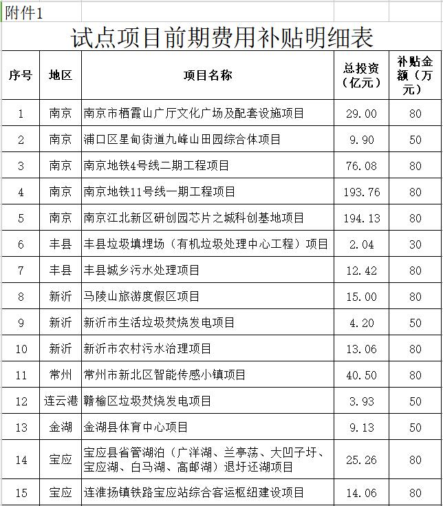日前,江蘇省發(fā)布了關(guān)于下達(dá)2018年度第二批PPP項(xiàng)目獎(jiǎng)補(bǔ)資金的通知,涉及多個(gè)污水處理項(xiàng)目和生活垃圾焚燒發(fā)電項(xiàng)目。詳情如下:關(guān)于下達(dá)2018年度第二批PPP項(xiàng)目獎(jiǎng)補(bǔ)資金的通知 蘇財(cái)金〔2018〕135號(hào)南京市、徐州市、豐縣、新沂市、常州市、連云港市、金湖縣、寶應(yīng)縣、高郵市、丹陽市、泰州市、興化市、宿...