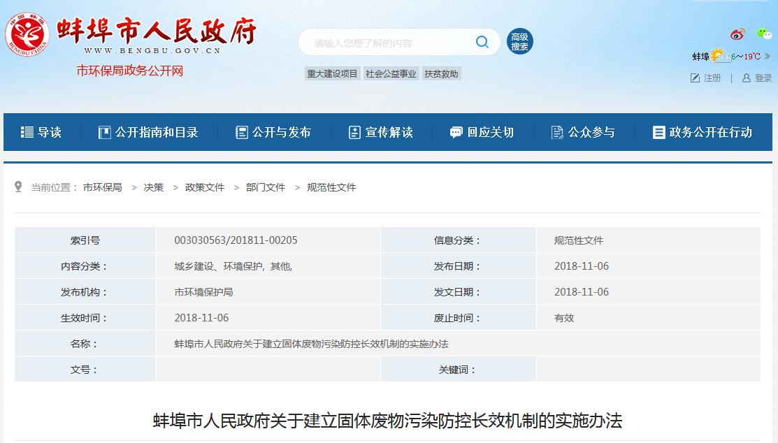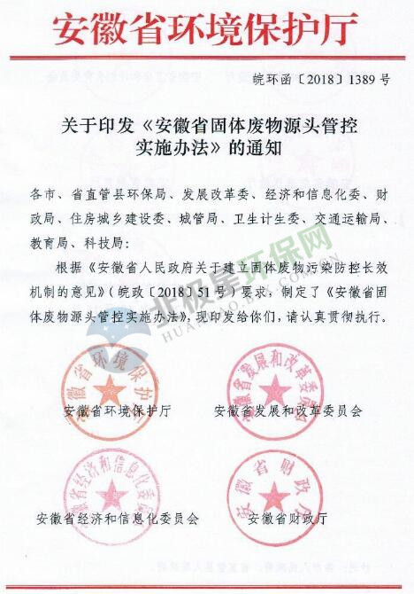 日前,安徽省發(fā)布《安徽省固體廢物源頭管控實施辦法》,詳情如下:關(guān)于印發(fā)《安徽省固體廢物源頭管控實施辦法》的通知各市、省直管縣環(huán)保局、發(fā)展改革委、經(jīng)濟和信息化委、財政局、住房城鄉(xiāng)建設(shè)委、城管局、衛(wèi)生計生委、交通運輸局、教育局、科技局:根據(jù)《安徽省人民政府關(guān)于建立固體廢物污染防控長效機制的意見》(皖政〔...