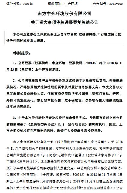 中金環(huán)境11月22日晚間公告,公司實(shí)際控制人沈金浩擬將1.28億股股份(占公司總股本的6.65%)轉(zhuǎn)讓給無錫市政,轉(zhuǎn)讓價(jià)格為4.42元/股,交易作價(jià)5.65億元。此外,沈金浩擬通過表決權(quán)委托方式將剩余股份中2.33億股股份對應(yīng)的表決權(quán)委托給無錫市政,占公司總股本的12.13%。交易完成后公司控股股東...
