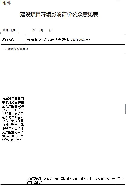 貴陽(yáng)市城鄉(xiāng)生活垃圾分類專項(xiàng)規(guī)劃(2018-2022年)環(huán)境影響評(píng)價(jià)公眾參與信息公示根據(jù)《中華人民共和國(guó)環(huán)境影響評(píng)價(jià)法》、《環(huán)境影響評(píng)價(jià)公眾參與辦法》(生態(tài)環(huán)境部令 第4號(hào))規(guī)定,現(xiàn)就貴陽(yáng)市城鄉(xiāng)生活垃圾分類專項(xiàng)規(guī)劃(2018-2022年)環(huán)境影響評(píng)價(jià)信息進(jìn)行第一次公示,歡迎公眾積極參與并提出寶貴意見。...