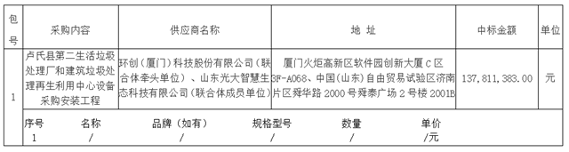 盧氏縣順天環(huán)衛(wèi)科技有限公司盧氏縣第二生活垃圾處理廠和建筑垃圾處理再生利用中心設(shè)備采購(gòu)安裝工程-中標(biāo)公告 一、項(xiàng)目基本情況 1、采購(gòu)項(xiàng)目編號(hào):2021-09-7 三盧采購(gòu)(2021)第306號(hào) 2、采購(gòu)項(xiàng)目名稱:盧氏縣第二生活垃圾處理廠和建筑垃圾處理再生利用中心設(shè)備采購(gòu)安裝工程 3、采購(gòu)方式:公開招標(biāo)...