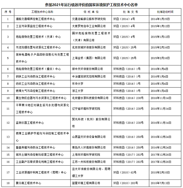 各國(guó)家環(huán)境保護(hù)工程技術(shù)中心: 為加強(qiáng)和規(guī)范國(guó)家環(huán)境保護(hù)工程技術(shù)中心(以下簡(jiǎn)稱工程技術(shù)中心)的建設(shè)與運(yùn)行管理,更好地發(fā)揮工程技術(shù)中心作用,根據(jù)《國(guó)家環(huán)境保護(hù)工程技術(shù)中心管理辦法》(環(huán)函〔2015〕299號(hào))的有關(guān)要求,我司將于近期組織開展工程技術(shù)中心的運(yùn)行績(jī)效評(píng)價(jià)工作?,F(xiàn)將有關(guān)事項(xiàng)通知如下。 一、評(píng)價(jià)...