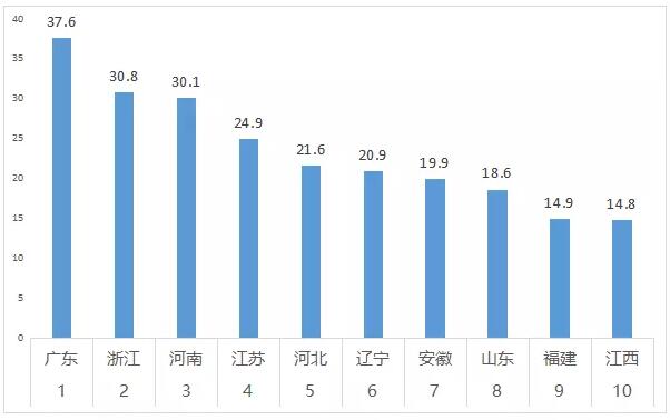 截止2018年9月30日,2018年度前九個(gè)月的全國(guó)新簽?zāi)曩M(fèi)總額高達(dá)355億,比2017年全年總額高出37億。的高速增長(zhǎng),除了廣東、浙江、山東等傳統(tǒng)環(huán)衛(wèi)大省持續(xù)發(fā)力外,安徽、河南、河北、江西等新興環(huán)衛(wèi)大省的迅速崛起,更是蔚為壯觀……前十省份新簽項(xiàng)目年費(fèi)占全國(guó)總額的66% 截止2018年9月30日,新...