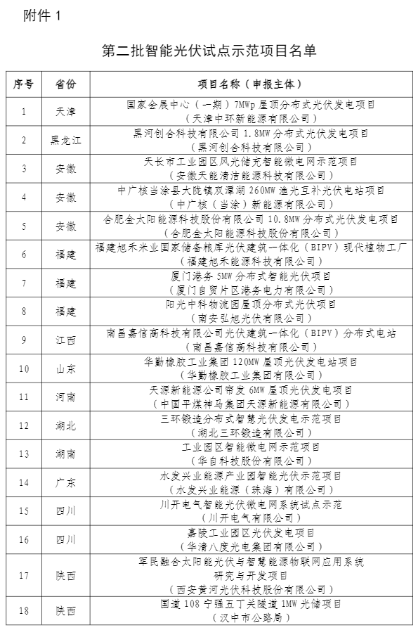 第二批智能光伏試點(diǎn)示范名單公示 為貫徹落實(shí)《智能光伏產(chǎn)業(yè)發(fā)展行動(dòng)計(jì)劃(2018-2020年)》(工信部聯(lián)電子〔2018〕68號(hào)),根據(jù)《工業(yè)和信息化部辦公廳住房和城鄉(xiāng)建設(shè)部辦公廳交通運(yùn)輸部辦公廳農(nóng)業(yè)農(nóng)村部辦公廳 國家能源局綜合司 國家鄉(xiāng)村振興局綜合司 關(guān)于開展第二批智能光伏試點(diǎn)示范的通知》(工信廳聯(lián)...