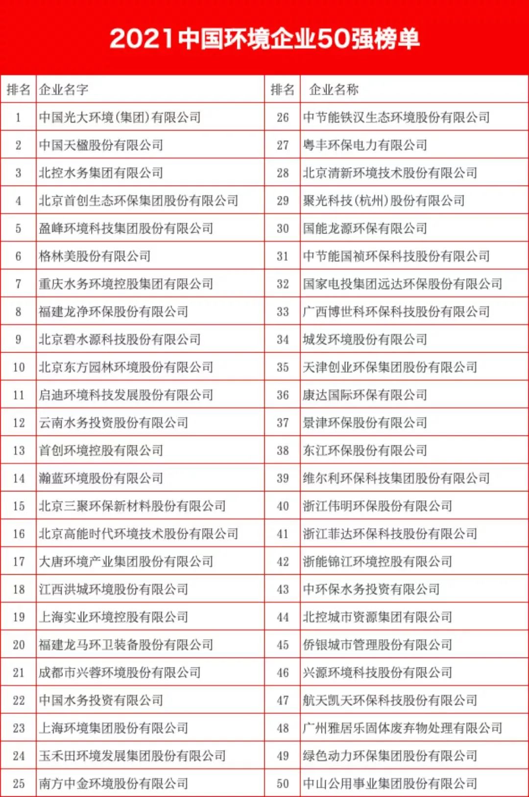 據(jù)此前主辦方發(fā)布的統(tǒng)計(jì)規(guī)則,2021中國(guó)環(huán)境企業(yè)50強(qiáng)榜單以企業(yè)申報(bào)為基礎(chǔ),以公正公開(kāi)為原則,以真實(shí)數(shù)據(jù)為依據(jù),結(jié)合上規(guī)模環(huán)境企業(yè)調(diào)研,按照2020年度營(yíng)業(yè)收入總額降序排列產(chǎn)生。其中,環(huán)保為主營(yíng)業(yè)務(wù)的上市公司以已公布的2020年報(bào)營(yíng)業(yè)收入數(shù)據(jù)為準(zhǔn);非環(huán)保類上市公司以年報(bào)中環(huán)保相關(guān)業(yè)務(wù)營(yíng)業(yè)收入數(shù)據(jù)為準(zhǔn)...