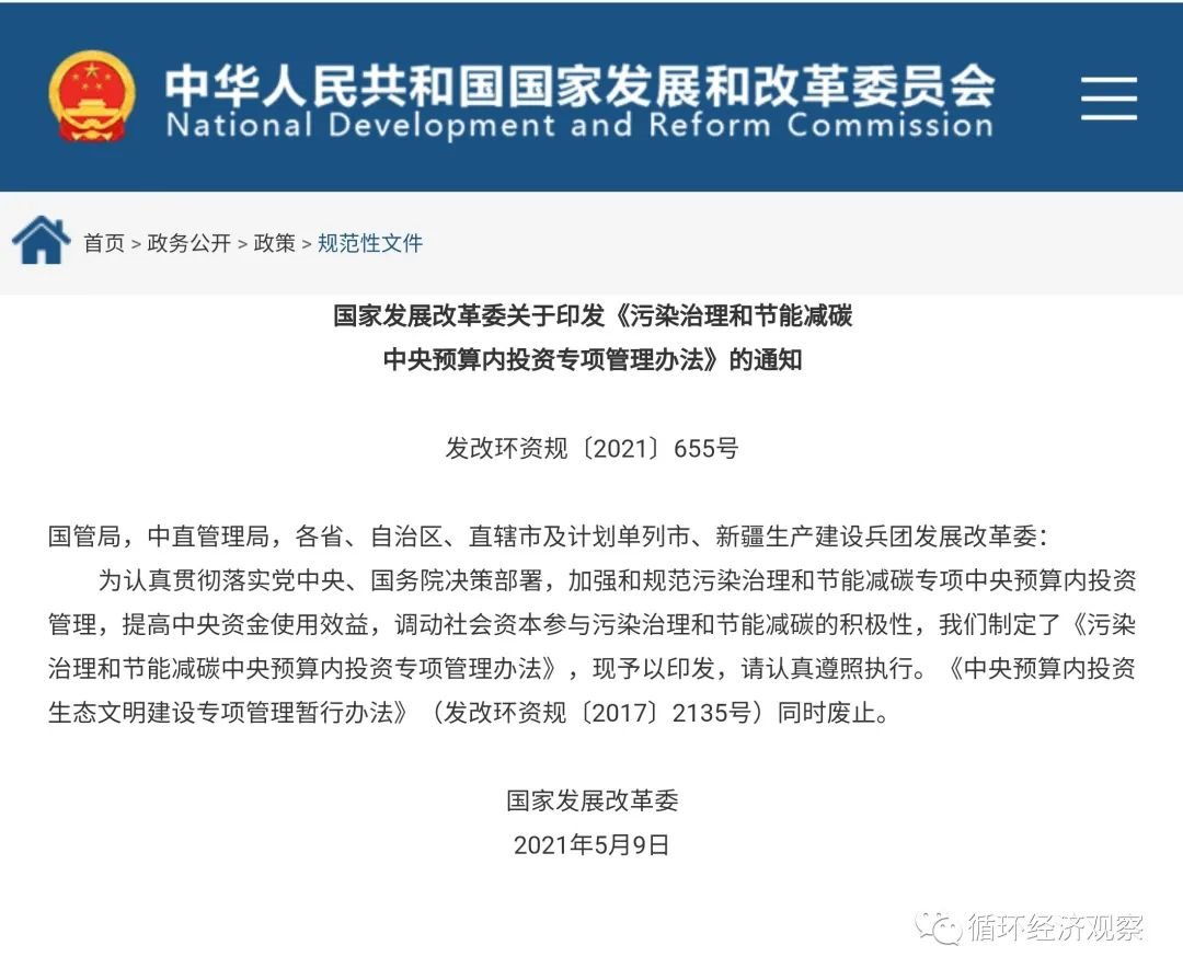 文章導(dǎo)讀5月9日,國家發(fā)改委印發(fā)《污染治理和節(jié)能減碳中央預(yù)算內(nèi)投資專項(xiàng)管理辦法》(以下簡稱“辦法”)的通知,辦法稱,為加強(qiáng)和規(guī)范污染治理和節(jié)能減碳專項(xiàng)中央預(yù)算內(nèi)投資管理,提高中央資金使用效益,調(diào)動(dòng)社會資本參與污染治理和節(jié)能減碳的積極性,特制定本辦法。此專項(xiàng)將重點(diǎn)支持污水垃圾處理等環(huán)境基礎(chǔ)設(shè)施建設(shè)、節(jié)...