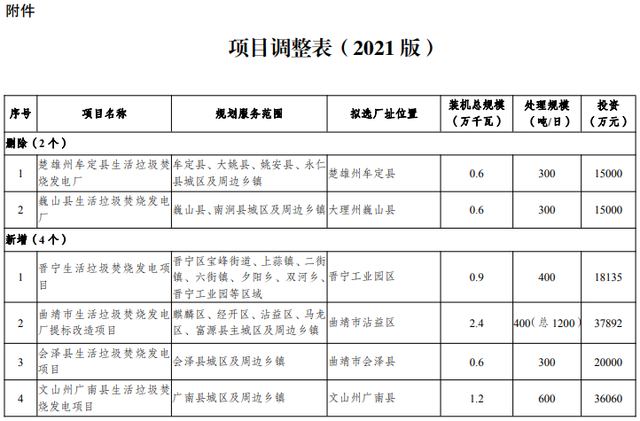 各州(市)發(fā)展改革委、住房城鄉(xiāng)建設(shè)局(環(huán)衛(wèi)主管部門(mén))、能源局、生態(tài)環(huán)境局、自然資源局: 為統(tǒng)籌推進(jìn)全省生活垃圾焚燒處理設(shè)施建設(shè)工作,按照《云南省生活垃圾焚燒發(fā)電中長(zhǎng)期專(zhuān)項(xiàng)規(guī)劃(2019-2030年)》(以下簡(jiǎn)稱(chēng)《規(guī)劃》)要求,根據(jù)項(xiàng)目進(jìn)展和實(shí)際情況,每年對(duì)《規(guī)劃》實(shí)行動(dòng)態(tài)調(diào)整?,F(xiàn)將調(diào)整的《規(guī)劃》項(xiàng)目...