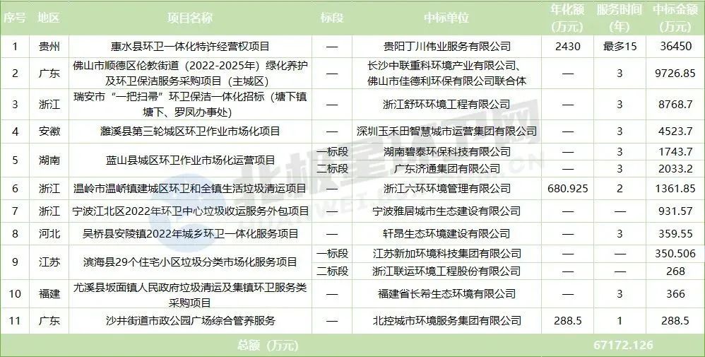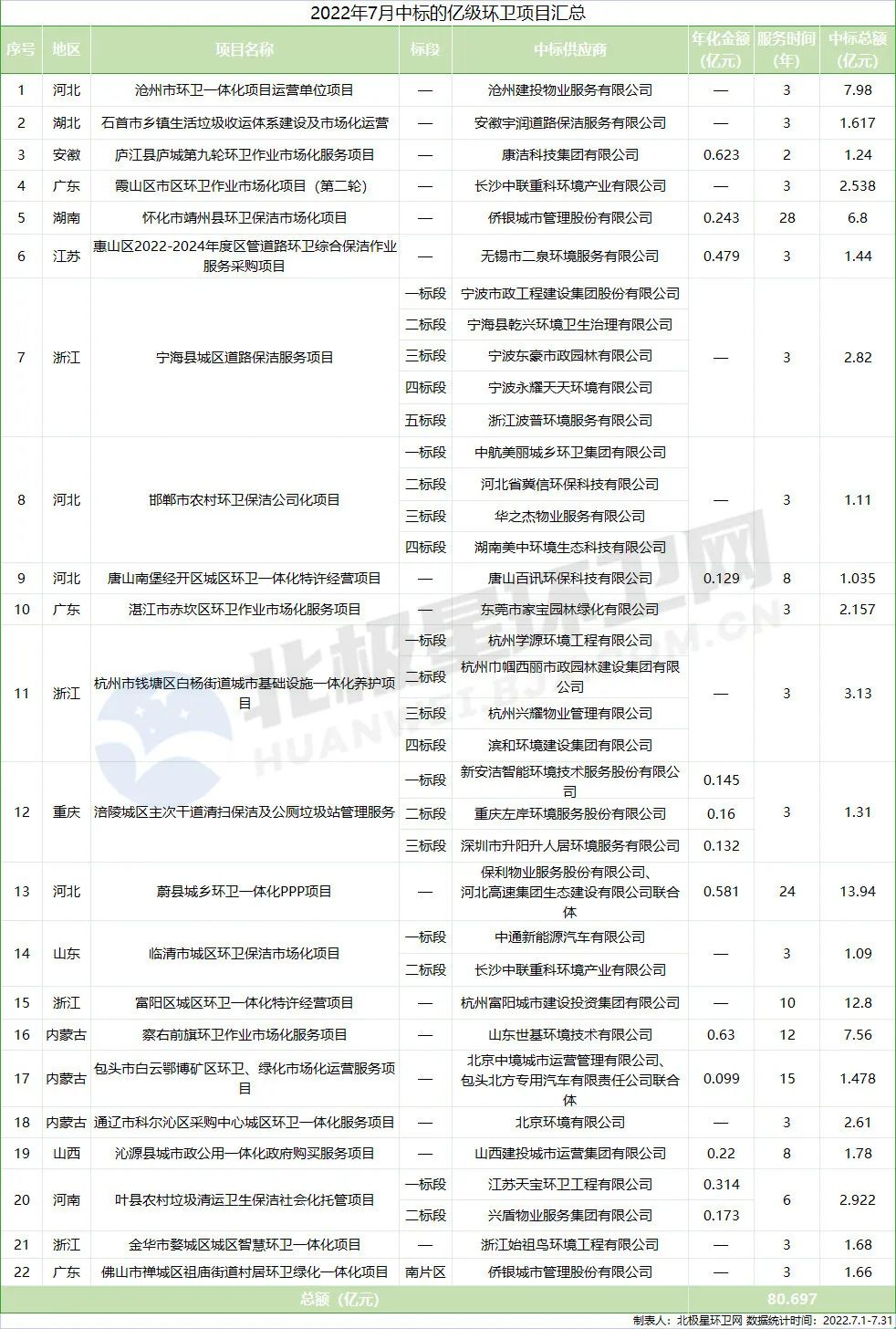 7月共開(kāi)出2個(gè)10億+項(xiàng)目,分別是13.94億元的河北蔚縣城鄉(xiāng)環(huán)衛(wèi)一體化PPP項(xiàng)目和12.8億元的浙江富陽(yáng)區(qū)城區(qū)環(huán)衛(wèi)一體化特許經(jīng)營(yíng)項(xiàng)目,這兩個(gè)項(xiàng)目分別被保利物業(yè)、河北高速聯(lián)合體以及杭州富陽(yáng)城投收入囊中。項(xiàng)目匯總?cè)缦拢?1 河北、浙江、廣東三地仍然領(lǐng)先內(nèi)蒙古地區(qū)異軍突起眾所周知,河北、浙江、廣東地區(qū)環(huán)...