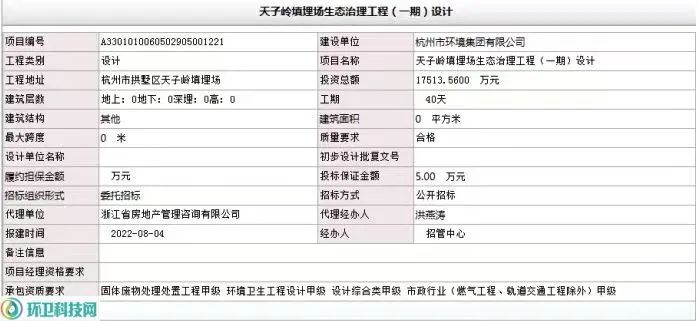 來(lái)源 | 環(huán)衛(wèi)科技網(wǎng)作者 | ivy筆者昨日注意到,杭州市人民政府網(wǎng)站8月5日公布了“天子嶺填埋場(chǎng)生態(tài)治理工程(一期)設(shè)計(jì)招標(biāo)核準(zhǔn)登記”,這意味著坊間流傳已久的杭州天子嶺生活垃圾填埋場(chǎng)生態(tài)治理工程即將進(jìn)入實(shí)操階段。從這份核準(zhǔn)登記文件看,天子嶺填埋場(chǎng)生態(tài)治理工程建設(shè)單位為杭州市環(huán)境集團(tuán)有限公司,投資總...