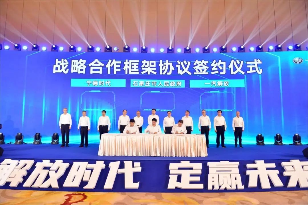 河北省委常委、石家莊市委書(shū)記張超超,河北省副省長(zhǎng)胡啟生,石家莊市委常委、正定縣委書(shū)記王俊紅,中國(guó)一汽黨委書(shū)記、董事長(zhǎng)徐留平,中國(guó)一汽黨委常委、紀(jì)委書(shū)記、國(guó)家監(jiān)委駐中國(guó)一汽監(jiān)察專員董云鵬,中國(guó)一汽總經(jīng)理助理、一汽解放黨委書(shū)記、董事長(zhǎng)胡漢杰,寧德時(shí)代副董事長(zhǎng)周佳等出席儀式。寧德時(shí)代與一汽解放共同成立解放...