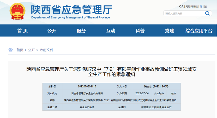 013起事故9人死亡,有限空間成了連環(huán)“殺手”!伴隨著高溫天氣,各類有毒有害氣體也容易蒸發(fā)聚集,因此有限空間中毒室息事故變得頻發(fā)。7月2日,陜西省漢中鋅業(yè)特種材料有限公司對(duì)制液車間1#解析罐內(nèi)損壞的導(dǎo)流柱進(jìn)行外包清理作業(yè)時(shí)發(fā)生一起有限空間作業(yè)中毒事故,造成3人死亡。6月23日,廣東省陽(yáng)江市陽(yáng)東區(qū)那龍...