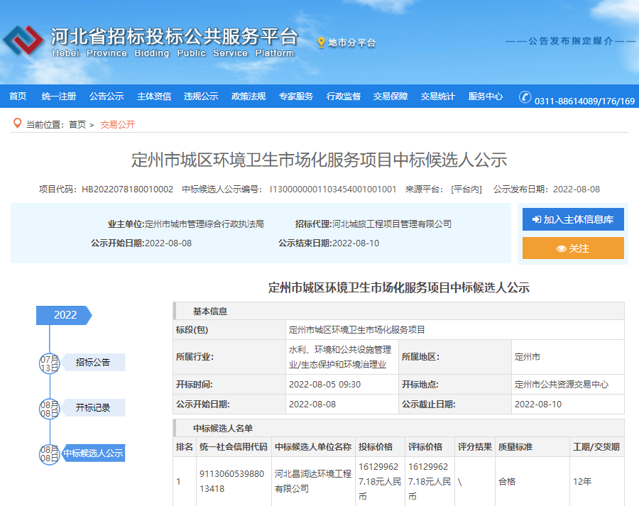 8月8日,超19億元的定州市城區(qū)環(huán)境衛(wèi)生市場(chǎng)化服務(wù)項(xiàng)目公布中標(biāo)候選人公示,河北昌潤(rùn)達(dá)環(huán)境工程有限公司排名第一;8月9日,約5.5億元三河市城鄉(xiāng)環(huán)衛(wèi)一體化項(xiàng)目又被北京環(huán)境有限公司和北京首創(chuàng)環(huán)境投資有限公司攜手?jǐn)孬@。至此,河北省今年已開標(biāo)的億級(jí)環(huán)衛(wèi)項(xiàng)目總金額已超119億元,加上在招標(biāo)項(xiàng)目,河北省今年環(huán)衛(wèi)...