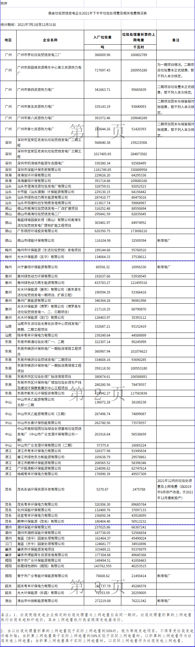 廣東省發(fā)展改革委關(guān)于公布有關(guān)垃圾焚燒發(fā)電企業(yè)2021年下半年垃圾處理量及相關(guān)電量的通知 粵發(fā)改價(jià)格函〔2022〕1180號(hào)各地級(jí)以上市發(fā)展改革局(委),廣東電網(wǎng)公司,深圳供電局,相關(guān)垃圾焚燒發(fā)電企業(yè): 一、根據(jù)原省物價(jià)局《轉(zhuǎn)發(fā)國(guó)家發(fā)展改革委關(guān)于完善垃圾焚燒發(fā)電價(jià)格政策的通知》(粵價(jià)〔2012〕170...