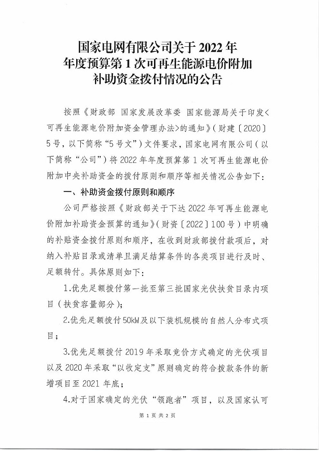 風(fēng)電105億、光伏261億、生物質(zhì)發(fā)電33.5億!國(guó)家電網(wǎng)撥付2022年度可再生能源電價(jià)附加補(bǔ)助資金