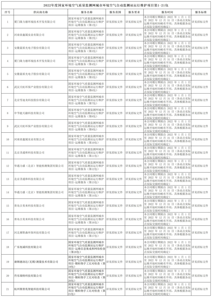 2021年12月17日下午,中國環(huán)境監(jiān)測總站在北京舉行國家環(huán)境空氣質(zhì)量監(jiān)測網(wǎng)運維服務(wù)項目簽約儀式,此次簽約儀式現(xiàn)場和線上同時進行,14家中標(biāo)運維單位法人及相關(guān)負責(zé)人參加。 為深入打好藍天保衛(wèi)戰(zhàn),2022年將由以下14家企業(yè)共同為全國1734個國控城市點位開展國家運維。 10月25日,中國環(huán)境監(jiān)測總站...
