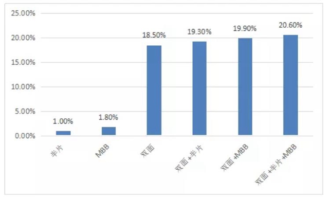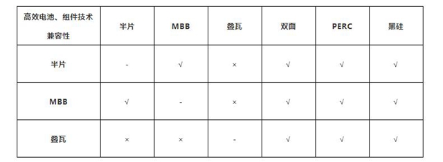 目前已成熟或即將成熟的高效組件技術(shù)之間還可以相互疊加,比如:雙面、半片與MBB技術(shù)的兼容性非常強(qiáng)。