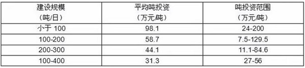 從設(shè)施規(guī)模來看,規(guī)模越大,平均投資額越低,因此建議有條件的地區(qū)宜考慮建設(shè)規(guī)模在200噸/日以上的餐廚垃圾處理設(shè)施,必要時可考慮跨區(qū)域處理。