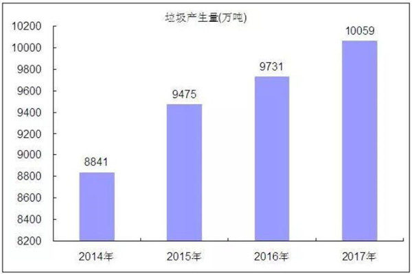 圖表:2014-2017年全國餐廚垃圾產(chǎn)生量情況