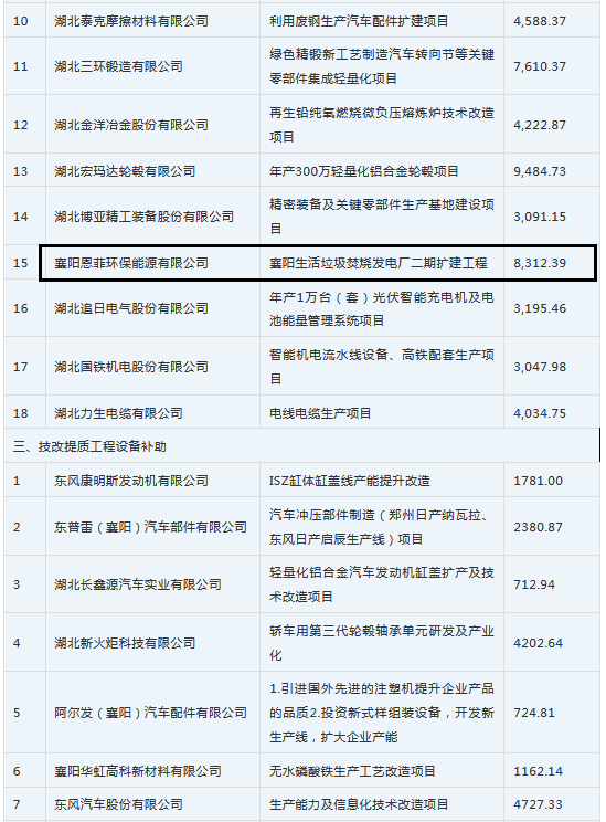 湖北襄陽市2018年享受《加快建設(shè)萬億工業(yè)強市十條措施》等政策支持資金企業(yè)名單新鮮出爐啦!其中涉及水泥窯協(xié)同處置生活垃圾等多個環(huán)保項目,快來看看有沒有你所在的企業(yè)?