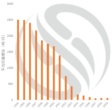 自垃圾分類收集與垃圾費隨袋收費政策相互結(jié)合后,在完善的獎懲機制配合下,臺北市的垃圾清運量變化明顯(如圖 1),填埋量也從最高每日2501噸,降至59噸,減量97.6%。到2010年,臺北市實現(xiàn)了垃圾零填埋的目標(biāo)。