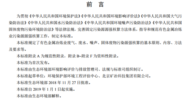 為貫徹《中華人民共和國環(huán)境保護法》《中華人民共和國環(huán)境影響評價法》《中華人民共和國大氣污染防治法》《中華人民共和國水污染防治法》《中華人民共和國環(huán)境噪聲污染防治法》《中華人民共和國固體廢物污染環(huán)境防治法》等法律法規(guī),完善固定污染源源強核算方法體系,指導(dǎo)和規(guī)范有色金屬冶煉業(yè)污染源源強核算工作,制定本標準。