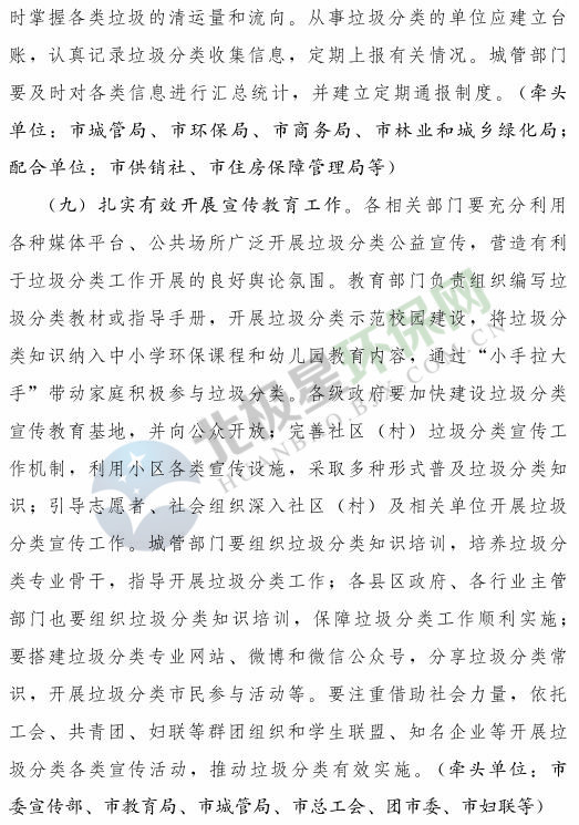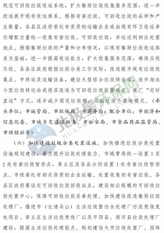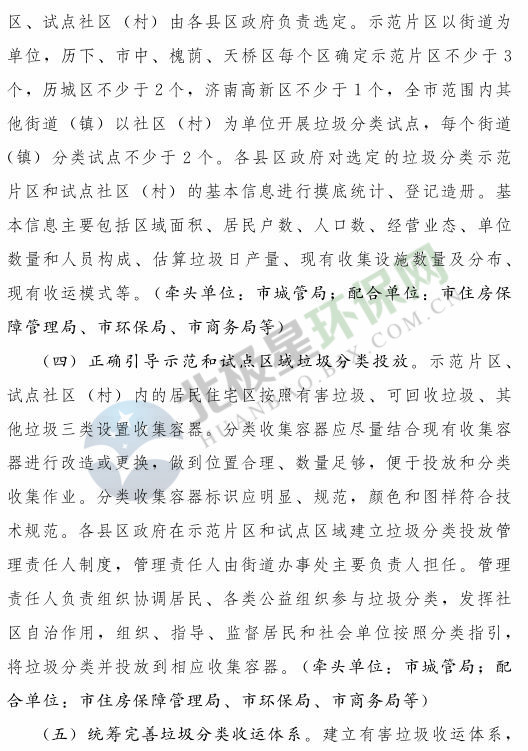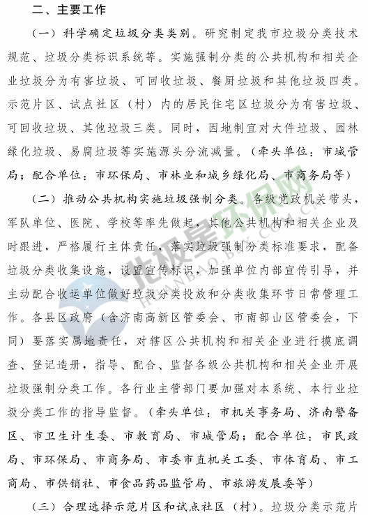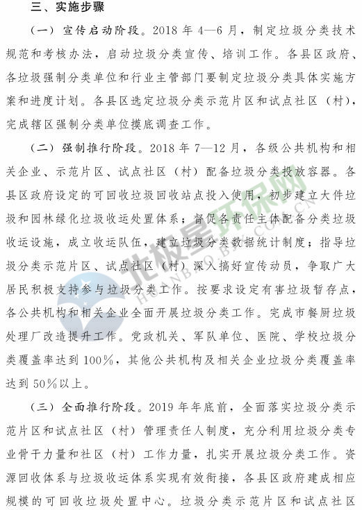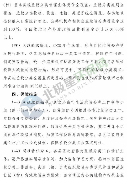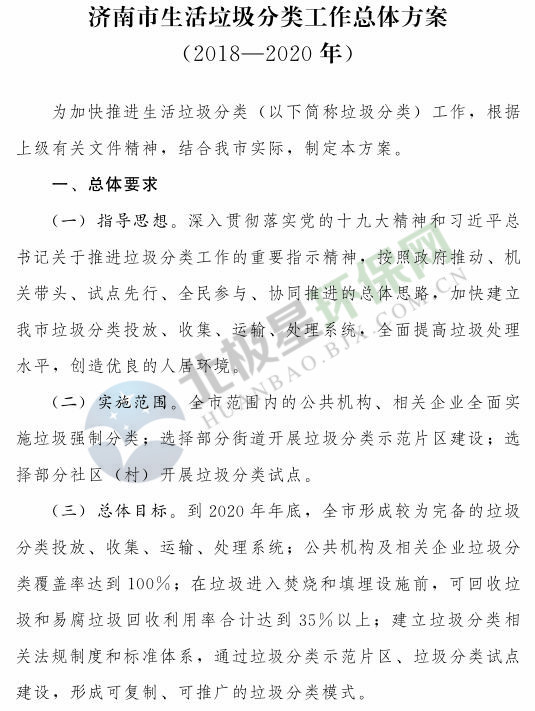 《濟(jì)南市生活垃圾分類工作總體方案(2018—2020年)》已經(jīng)印發(fā),《方案》提出,到 2020 年年底,全市形成較為完備的垃圾分類投放、收集、運(yùn)輸、處理系統(tǒng);公共機(jī)構(gòu)及相關(guān)企業(yè)垃圾分類覆蓋率達(dá)到 100% ;在垃圾進(jìn)入焚燒和填埋設(shè)施前,可回收垃圾和易腐垃圾回收利用率合計(jì)達(dá)到 35% 以上;建立垃圾分類相關(guān)法規(guī)制度和標(biāo)準(zhǔn)體系,通過垃圾分類示范片區(qū)、垃圾分類試點(diǎn)建設(shè),形成可復(fù)制、可推廣的垃圾分類模式。詳情如下: