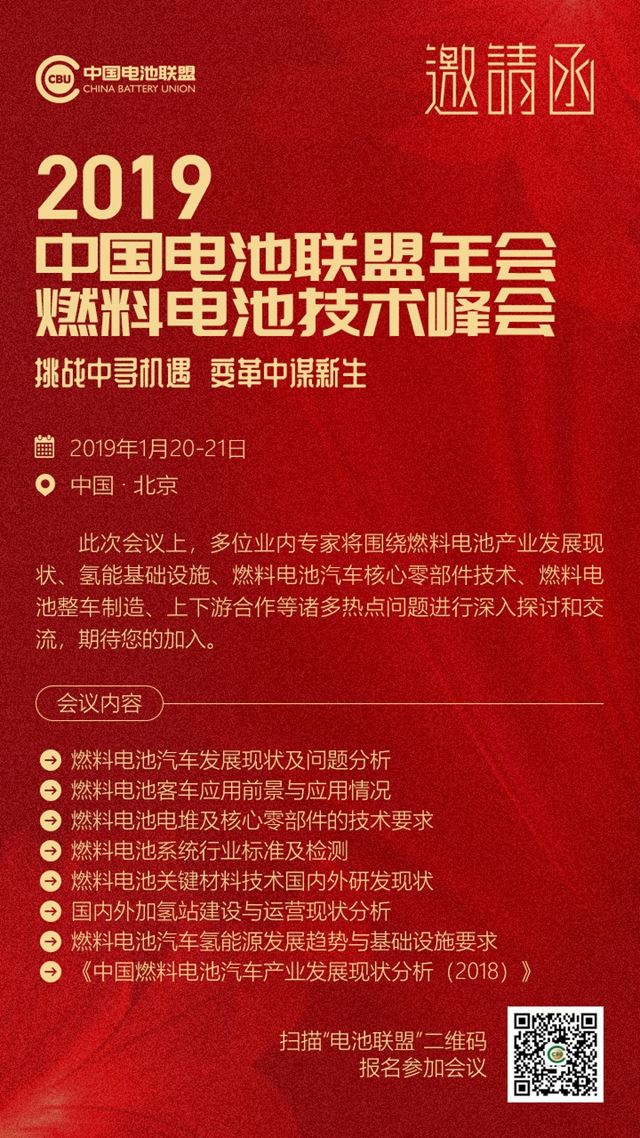 2019年1月20至21日,中國(guó)電池企業(yè)聯(lián)盟年會(huì)暨全國(guó)氫燃料電池汽車產(chǎn)業(yè)技術(shù)峰會(huì)將在京召開。本次峰會(huì)由中國(guó)電池聯(lián)盟、中國(guó)電子節(jié)能技術(shù)協(xié)會(huì)電池專委會(huì)、中國(guó)高科技產(chǎn)業(yè)研究會(huì)、清華大學(xué)、北京理工大學(xué)聯(lián)合舉辦。