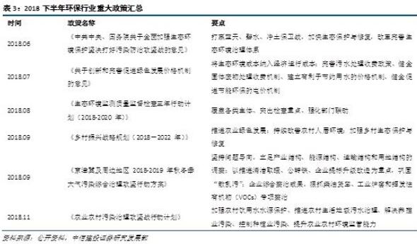 環(huán)保政策支持力度大,行業(yè)轉折現(xiàn)生機。18 年下半年以來,政府不僅出臺了打贏藍天保衛(wèi)戰(zhàn)等七大環(huán)保攻堅戰(zhàn)的政策,還相繼出臺包括鄉(xiāng)村振興戰(zhàn)略規(guī)劃、創(chuàng)新和完善促進綠色發(fā)展價格機制在內的一系列政策文件。這些政策的出臺與環(huán)保行業(yè)息息相關,對未來政策規(guī)劃、實現(xiàn)方法、監(jiān)督舉措等都進行了詳細且深刻的解釋說明,尤其在環(huán)保行業(yè)運營資產價格形成機制、政府承諾兌現(xiàn)力度等方面,更是提出了有效建議,從而推動環(huán)保行業(yè)的發(fā)展。