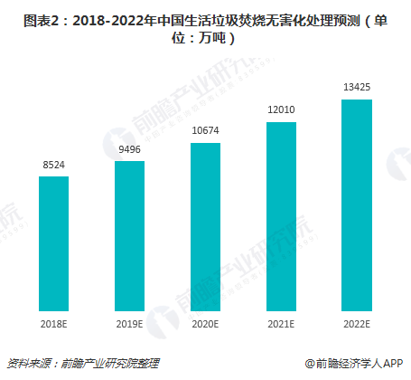 垃圾處理是現(xiàn)代社會(huì)人類(lèi)生活的剛性需求,垃圾是否得到清潔化處理,是現(xiàn)代文明的重要標(biāo)志。雖然生活垃圾產(chǎn)生量逐年增加,但隨著垃圾焚燒技術(shù)的不斷提升,生活垃圾的無(wú)害化處理率也在逐年提高。2018年,城市生活垃圾焚燒無(wú)害化處理量預(yù)計(jì)達(dá)8524萬(wàn)噸,到2022年將超過(guò)13000萬(wàn)噸。