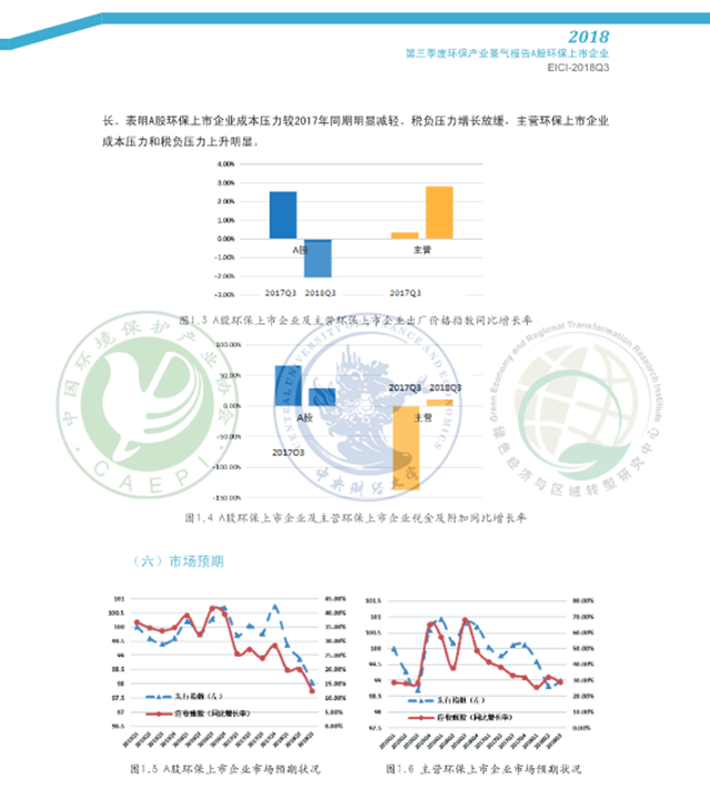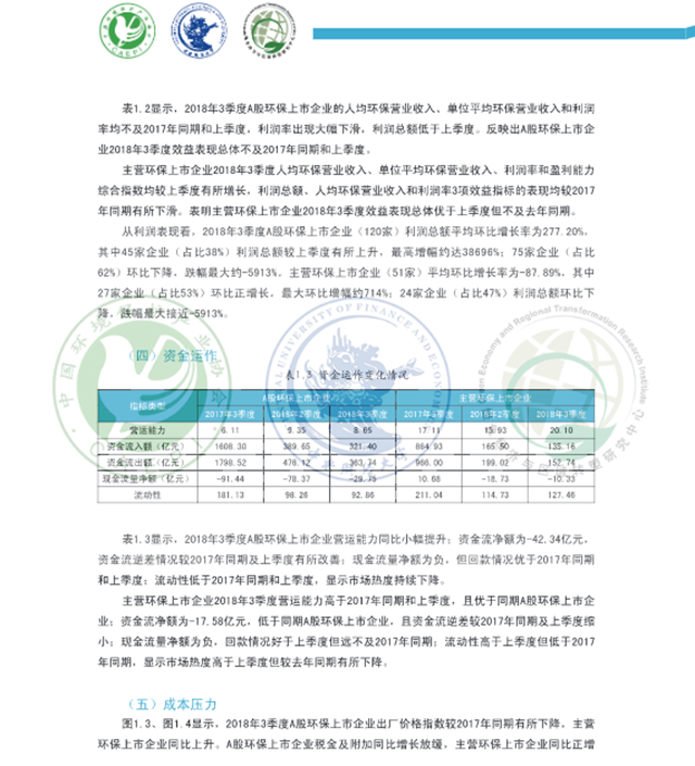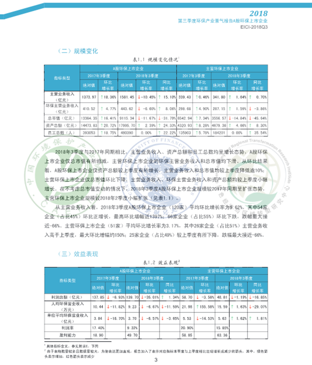 2018年3季度,從主營(yíng)業(yè)務(wù)收入、環(huán)保主營(yíng)業(yè)務(wù)收入、資產(chǎn)總額和員工總數(shù)看,A股環(huán)保上市企業(yè)規(guī)模較2017年同期呈現(xiàn)擴(kuò)張態(tài)勢(shì),主營(yíng)環(huán)保上市企業(yè)規(guī)模較上季度小幅擴(kuò)張:效益表現(xiàn)總體不及去年同期:資金流逆差情況較2017年同期和上季度有所改善, 回款情況好于上季度:A股環(huán)保上市企業(yè)成本壓力較2017年同期明顯減輕、稅負(fù)壓力增長(zhǎng)放緩,主營(yíng)環(huán)保上市企業(yè)成本壓力和稅負(fù)壓力上升較為明顯:預(yù)期A股環(huán)保上市企業(yè)2018年4季度市場(chǎng)表現(xiàn)可能欠佳,主營(yíng)環(huán)保上市企業(yè)下季度市場(chǎng)表現(xiàn)或?qū)⑴c本季度持平。