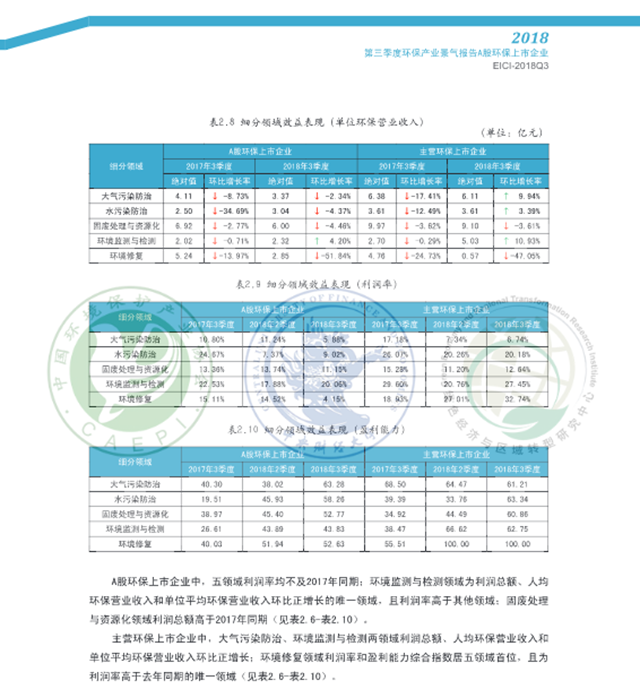 原標(biāo)題:2018年第三季度環(huán)保產(chǎn)業(yè)景氣報(bào)告:A股環(huán)保上市企業(yè)