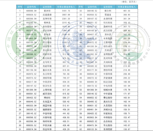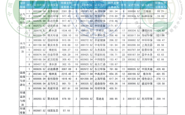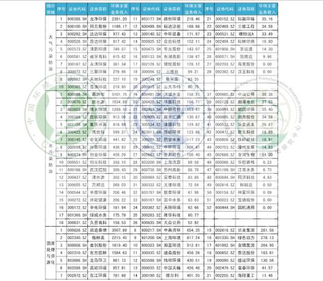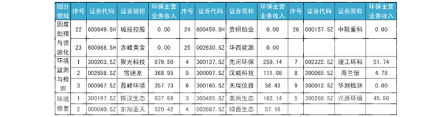 附錄B 2018年第三季度A股環(huán)保上市企業(yè)細(xì)分領(lǐng)域環(huán)保主營(yíng)業(yè)務(wù)收入情況(單位:百萬(wàn)元)