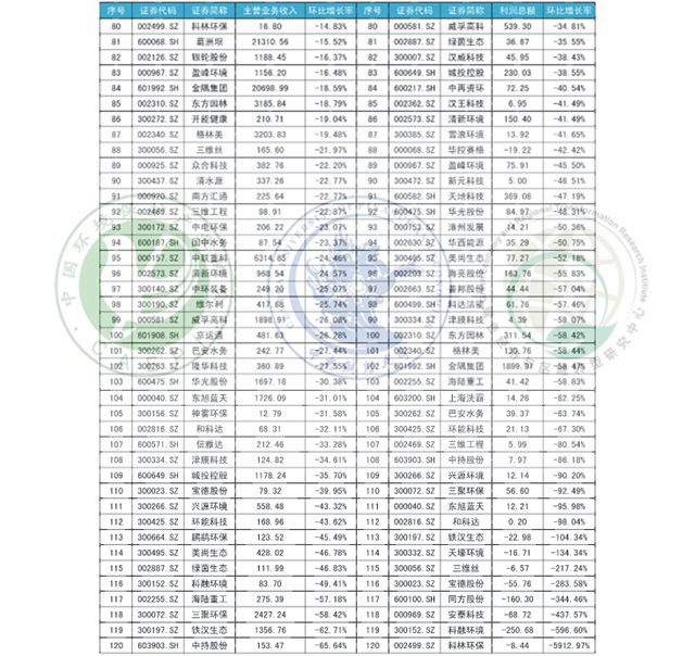 附錄E 2018年第三季度主營(yíng)環(huán)保上市企業(yè)表現(xiàn)(單位:百萬(wàn)元)