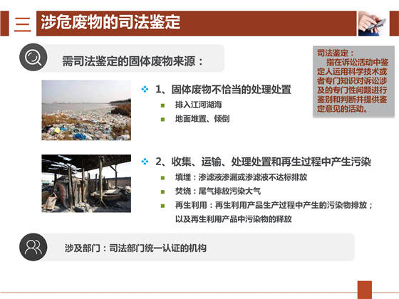 2018年石家莊市固體廢物管理培訓(xùn)會(huì)議課件日前公布,其中,“環(huán)境污染案件中固體廢物屬性的鑒別 省內(nèi)外典型案例”共32張PPT,課件多角度詳細(xì)闡述了環(huán)境污染案件中固體廢物屬性的鑒別,并附多個(gè)省內(nèi)外危險(xiǎn)廢物違法犯罪典型案例解讀。詳情如下: