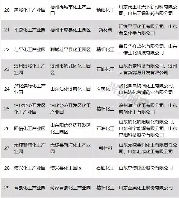 山東省公布“山東第三批擬認(rèn)定化工園區(qū)和專業(yè)化工園區(qū)”名單,名單中有29家化工園區(qū)和9家專業(yè)化工園。