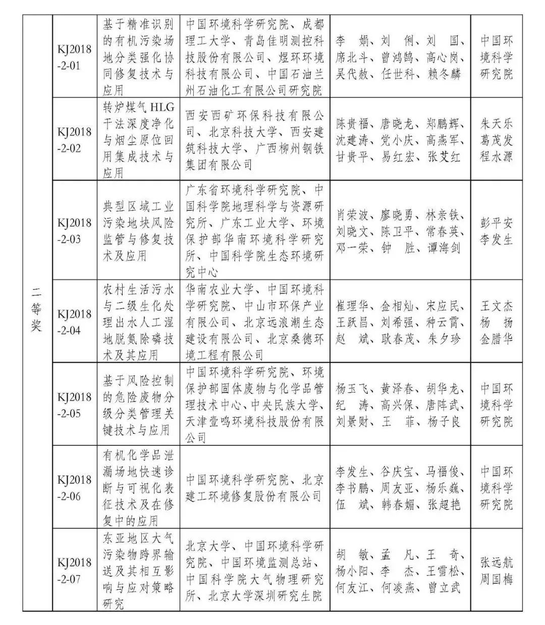 關于2018年度環(huán)境保護科學技術獎擬授獎項目的公示
