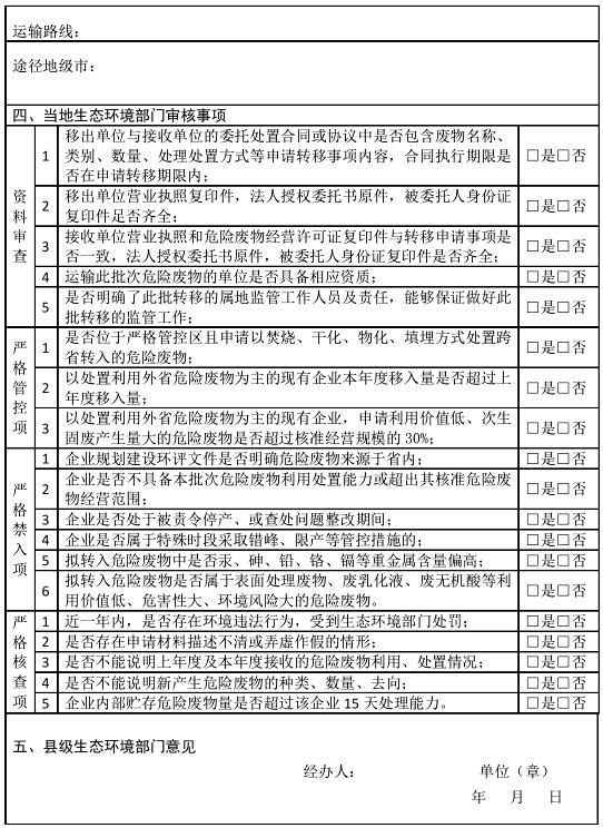二、從嚴(yán)把控危險(xiǎn)廢物跨省轉(zhuǎn)入。各級(jí)生態(tài)環(huán)境部門(mén)要認(rèn)真貫徹《河北省固體廢物污染環(huán)境防治條例》,嚴(yán)格控制省外的危險(xiǎn)廢物轉(zhuǎn)移至我省行政區(qū)域內(nèi)貯存或者處置。要對(duì)照“河北省固體(危險(xiǎn))廢物跨省移入申請(qǐng)表”(附件),從嚴(yán)核查跨省轉(zhuǎn)入申請(qǐng)。