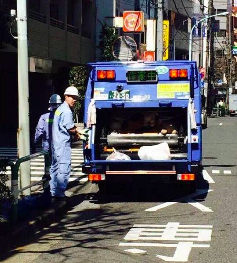 是的,在日本,真正環(huán)衛(wèi)工人只負責將一袋袋分類好的垃圾袋裝車帶走處理即可。