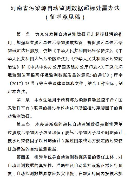 日前,河南印發(fā)《河南省污染源自動(dòng)監(jiān)測(cè)數(shù)據(jù)超標(biāo)處置辦法(征求意見(jiàn)稿)》。全文如下: