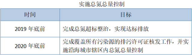 根據(jù)《計劃》要求,推進涉氮重點行業(yè)固定污染源治理,實行依法持證排污。并根據(jù)排污許可證確定對應涉氮重點行業(yè)總氮總量控制指標,實施沿海城市轄區(qū)內的行業(yè)總氮總量控制。