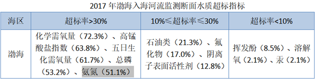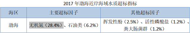 無機氮是渤海近岸海域超標率最高的超標因子。根據(jù)生態(tài)環(huán)境部發(fā)布的《2017中國近岸海域生態(tài)環(huán)境質量公報》數(shù)據(jù)顯示,渤海近岸海域無機氮平均濃度為0.252毫克/升,點位超標率為28.4%。是超標率最高的超標因子。(總氮包括無機氮)