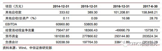 (3)內(nèi)部管理長期混亂,資金占用壓力大。2016年度中期報告前核查相關(guān)擔(dān)保、2016年度報告前更換審計師、2017年度中期報告編制等原因?qū)е律鲜鰣蟾婢窗磿r披露;2017年度報告延遲披露,且公司股票一直處于停牌狀態(tài)。2018年3月,因涉嫌信披和債券募資使用違法違規(guī),遭中國證監(jiān)會調(diào)查。公司于2018年7月6日披露公司及其附屬公司近12個月內(nèi)未披露的新發(fā)案件及未結(jié)案件累計涉及金額約人民幣4.34億元(不含部分利息及違約金)。其他應(yīng)收款占總資產(chǎn)的比例逐年攀升,2017年上半年高達(dá)29%,主要是對相關(guān)貿(mào)易公司進(jìn)行的往來,資金被關(guān)聯(lián)方占用比例高。