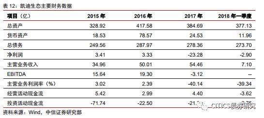 凱迪生態(tài)環(huán)境科技股份有限公司是一家上市公司。2014年陽光凱迪旗下生物資產(chǎn)整體注入凱迪生態(tài),公司成為一家生物質(zhì)發(fā)電、風(fēng)電業(yè)務(wù)為主的清潔能源企業(yè)。2018年5月7號,凱迪生態(tài)發(fā)布公告未能按約定籌措足額償付資金,構(gòu)成實質(zhì)性違約。公司宣稱加快資產(chǎn)重組來償還債務(wù),但隨后仍有債券違約。