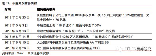 中融雙創(chuàng)由自然人牛相坤、潘長清于2012年11月共同出資成立,設(shè)立時公司名稱為鄒平長城實業(yè)有限公司。主要從事鋁精深加工、能源物流、現(xiàn)代農(nóng)業(yè)以及紡織品生產(chǎn)與銷售業(yè)務(wù),鋁精深加工業(yè)務(wù)是其主要的收入和利潤來源。2018年6月14日,公司發(fā)布公告稱 “16長城01”應(yīng)于6月13日付息及兌付回售部分本金,截至當(dāng)日尚未能按照約定將本期利息4230萬元劃至托管機(jī)構(gòu),構(gòu)成實質(zhì)性違約。