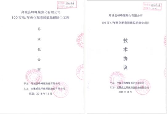日前,安徽威達環(huán)保中標新疆維吾爾族自治區(qū)阿克蘇地區(qū)拜城縣峰峰煤焦化有限公司100萬噸/年焦化配套脫硫脫硝除塵總承包項目。
