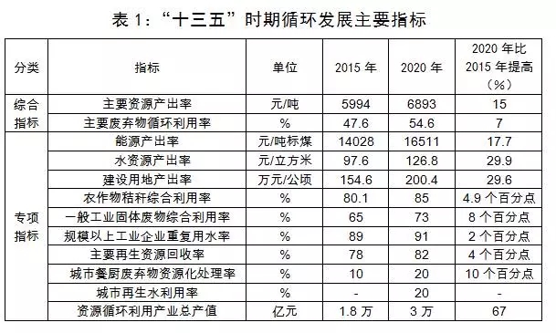 根據(jù)《引領(lǐng)行動》,到2020年,我國主要資源產(chǎn)出率比2015年提高15%,主要廢棄物循環(huán)利用率達(dá)到54.6%左右;一般工業(yè)固體廢物綜合利用率達(dá)到73%,農(nóng)作物秸稈綜合利用率達(dá)到85%。
